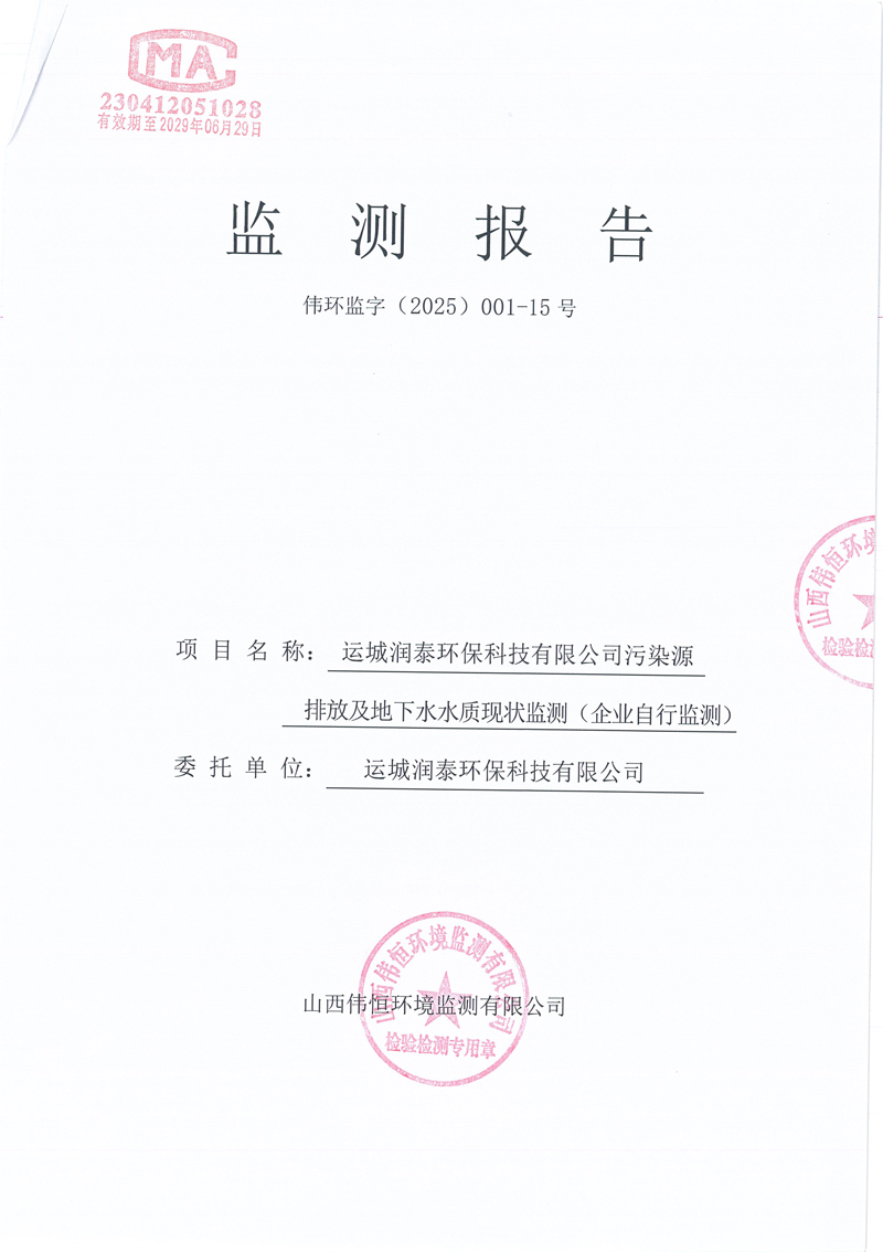 2025年潤泰環(huán)保十二月份自行監(jiān)測報告